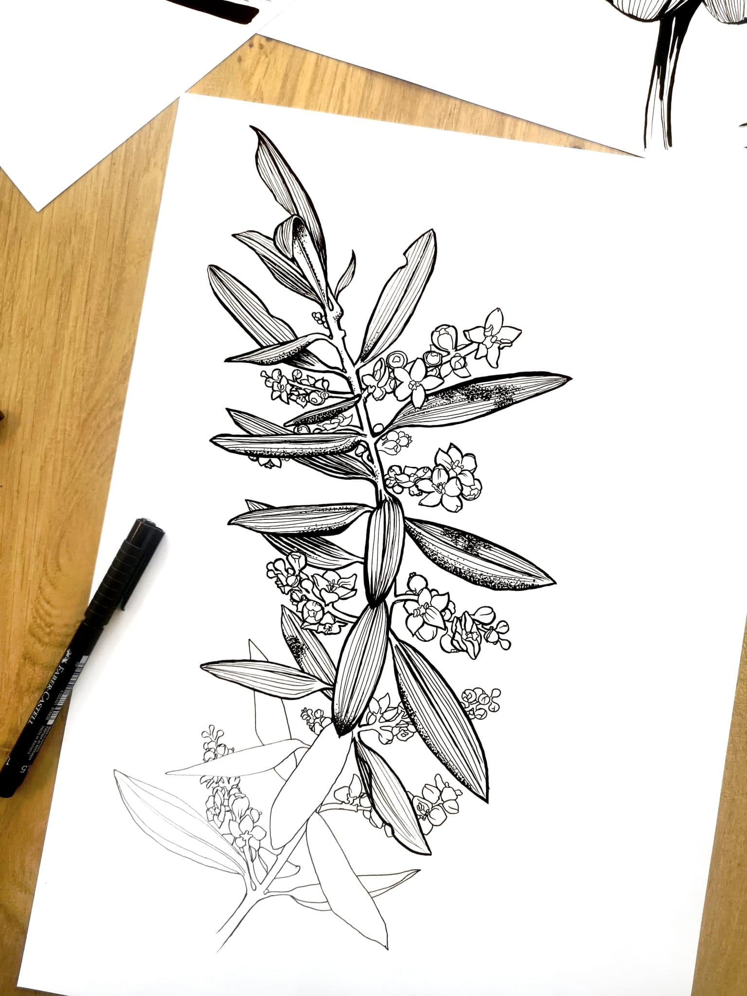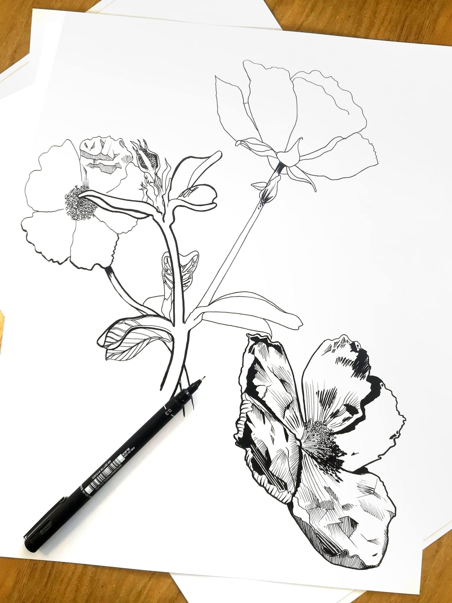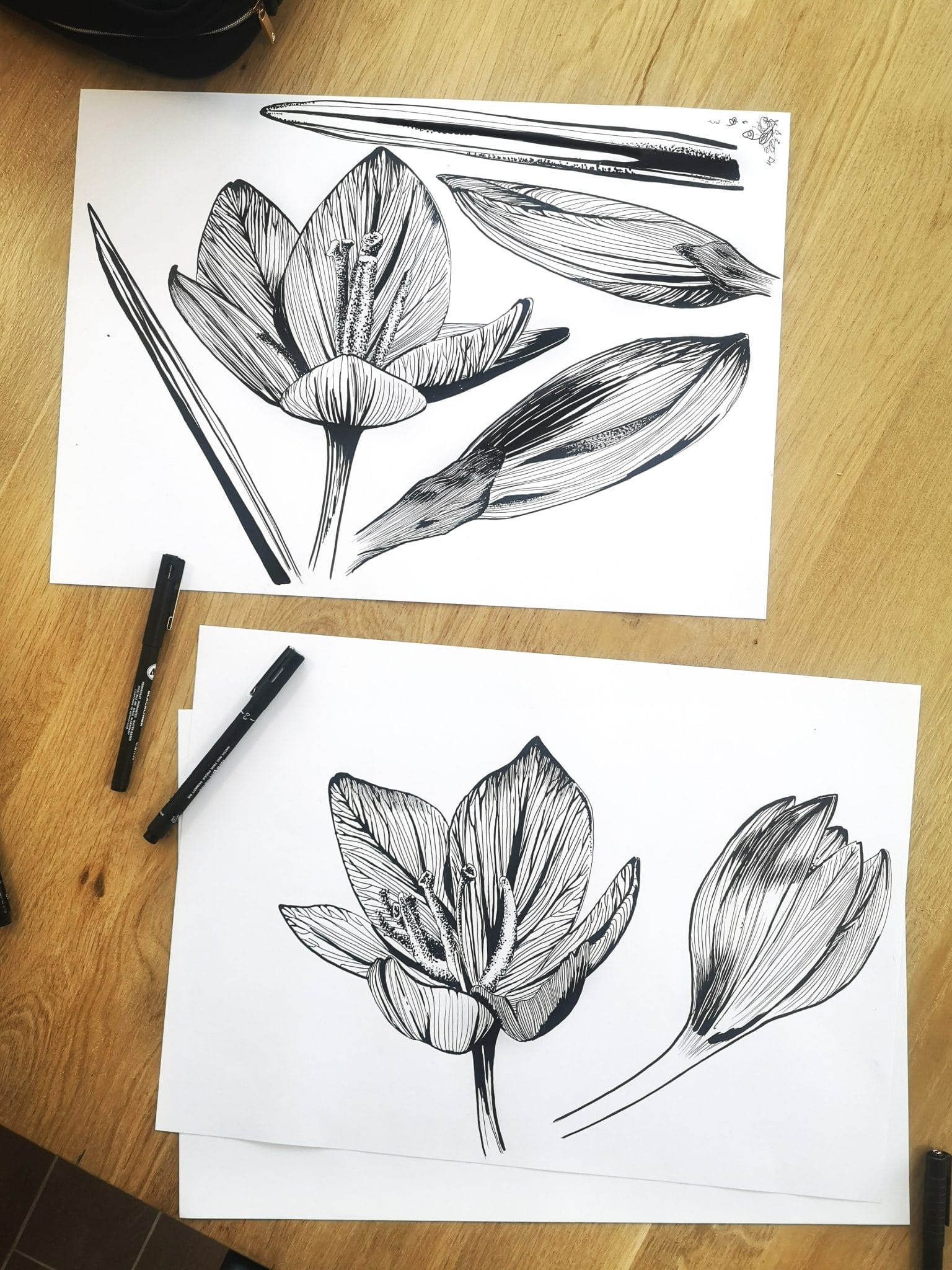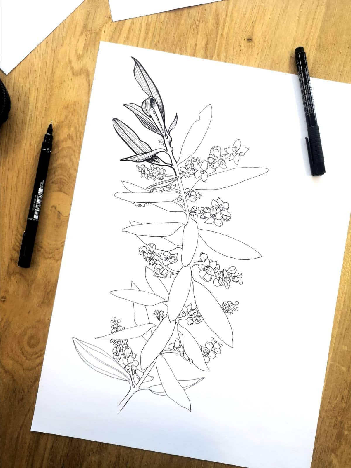 Réalisées sur des formats A3 (297 x 420 mm), ces illustrations ont été scannées puis coloriées numériquement. Pour mettre en lumière les couleurs les plus attractives et originales, nos équipes ont sélectionné toute une gamme chromatique associée à chaque fleur : le camaïeux de vert pour les bourgeons, jeunes pousses et feuilles plus matures / les camaïeux de couleurs chaudes pour les pétales et le pollen.
