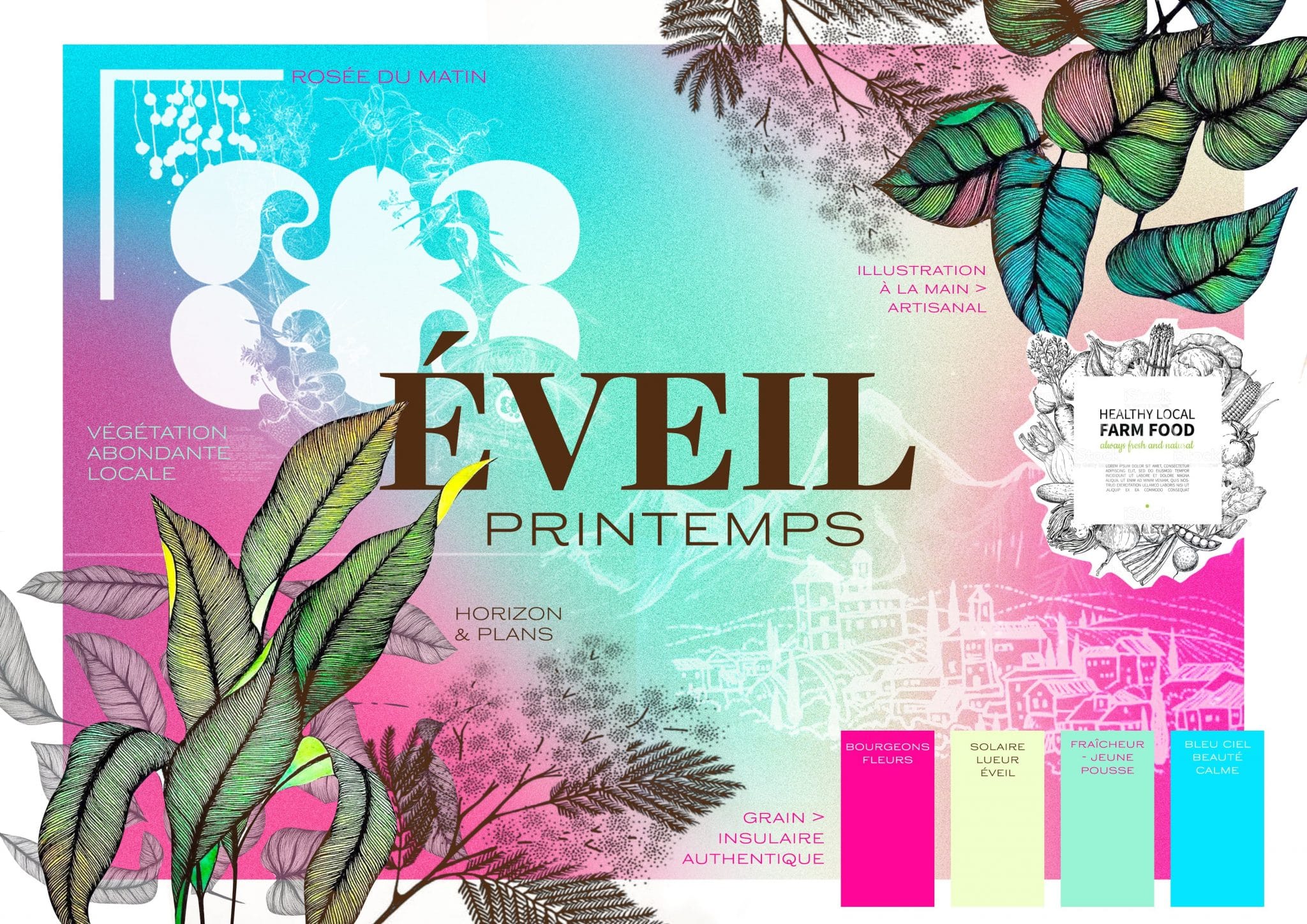 Celui-ci s’appuie sur une immersion florale façon « carte postale ». L’observateur découvre petit à petit la richesse du territoire sur les principes d’exploration et de découverte. Des plantes entourent les supports de communication et sortent du cadre pour renforcer l’aspect naturel et vivant. Les villes / villages se retrouvent au 2nd plan pour laisser planer au-dessus de leurs toits les montagnes de Corse.